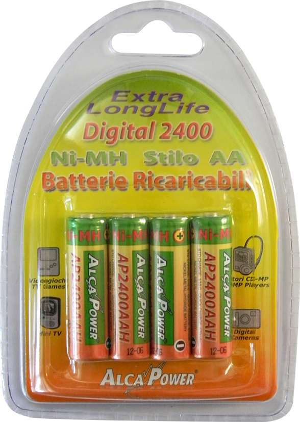 Blister di 4 NI-MH AA 1.2V Digital 2400 Blister 4 Batterie formato stilo Ni-MH Serie Digital 2400 di elevata qualità ad altissima capacità in un'accattivante e ben curata confezione consumer - Capacità 2000 mAh a norma IEC61951-2 Codice EAN: 8055323210362 |