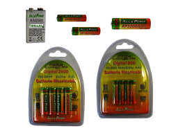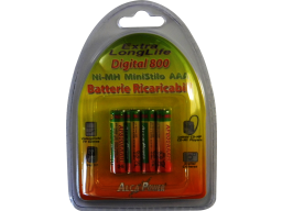Batterie NI-MH AAA 1.2V Digital 1300 Accumulatore Ni-MH formato AAA 1,2V Serie Digital 1300 di elevata qualità ad altissima capacità, ideale per le apparecchiature di nuova tecnologia, per alti consumi energetici, come le fotocamere digitali, Mp3,PDA - Capacità 1100 mAh a norma IEC/EN61951-2 Codice EAN: 8055323210447 |