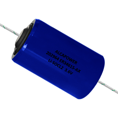 Pila Li-SOCL2 D 3.6V 19000mAh con refori Formato D 3.6 Volt 19000 mAh Li-SOCl2 Lithium-Thionyl Chloride con reofori assiali Corrente di Scarica Standard: 2.0mA Corrente Massima di Scarica: 230mA continui - 500mA ad impulsi Diametro: 34.0 mm Altezza: 61.5 mm Peso approssimativo: 115.0 g Codice EAN: 8055323218696 |