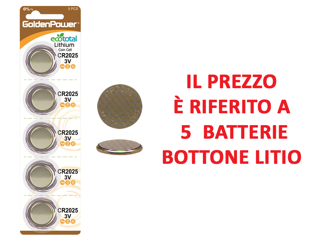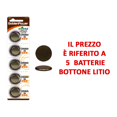 Bottone Litio 3 V d 20 mm h 2.5mm Blister 5pz Batteria a bottone 3V Diametro: 20 mm Altezza: 2,5 mm Confezione Blister 5 pz. Codice EAN: 8032611621130 |
