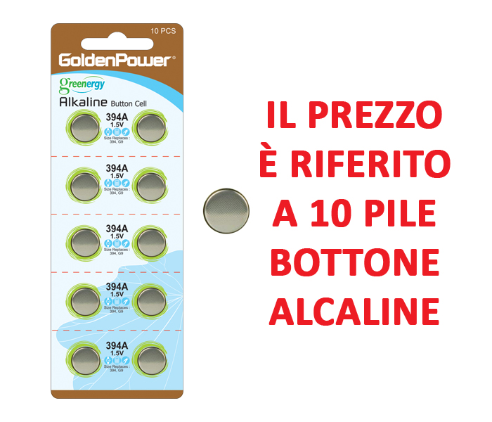 Blister 10 pz Bottone Alcaline d=9.5 h=3.60 1,5V Diametro: 9,50 mm Altezza: 3,60 mm IEC Design: LR45 Confezione in blister 10 pz. Codice EAN: 4895026700142 |