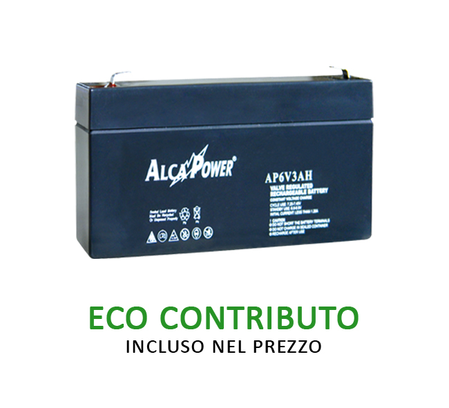 Ricaricabi. Ermetica 6V 3,3Ah Batteria al piombo ricaricabile ermetica 6V 3,3Ah Larghezza: 133 mm Altezza: 60 mm Profondità: 34 mm Spina: Faston T1 Codice EAN: 8055323213189 |