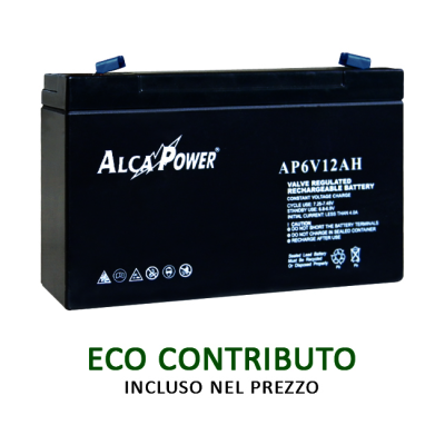Ricaricabile Ermetica 6V 12Ah Batteria al piombo ricaricabile ermetica 6V 12Ah Larghezza: 150 mm Altezza: 93 mm Profondità: 50 mm Spina: Faston T1 Codice EAN: 8055323213233 |