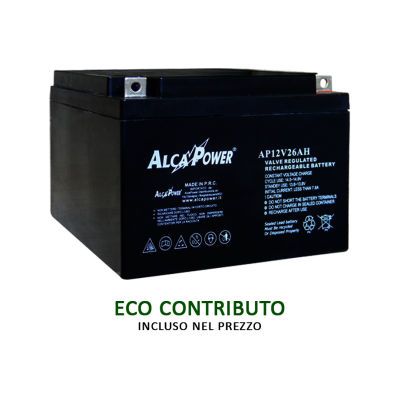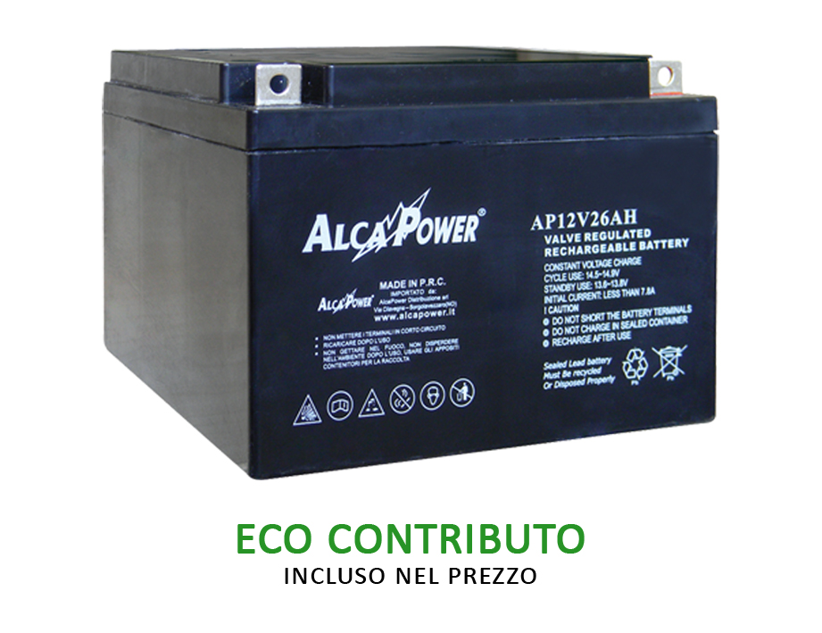 Ricaricabile Ermetica 12V 26Ah Batteria al piombo ricaricabile ermetica 12V 26Ah Larghezza: 166 mm Altezza: 125 mm Profondità: 175 mm Terminali: T4 Codice EAN: 8055323213363 |
