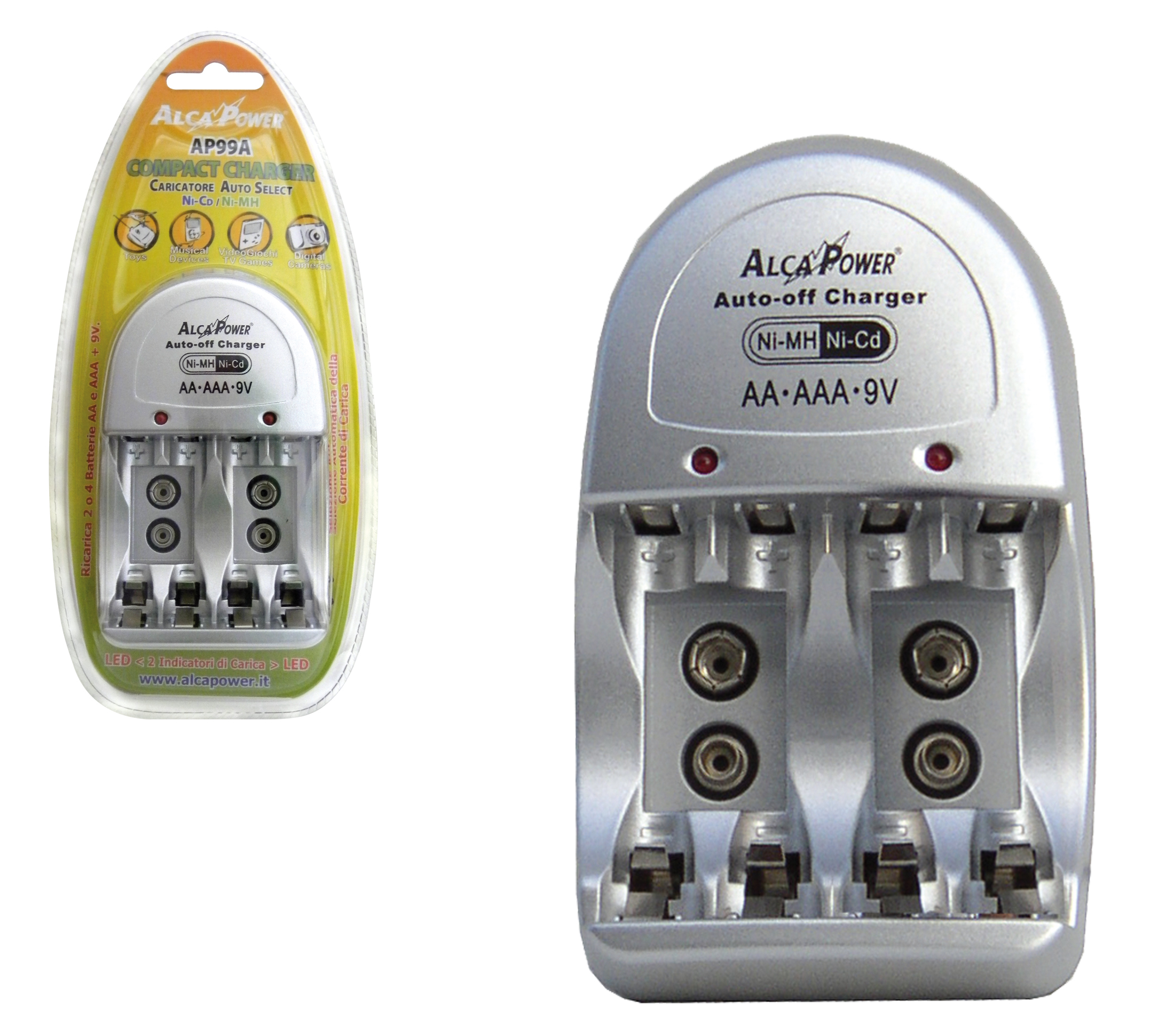 Caricabatterie Ni-Cd e Ni-MH AA, AAA e 9V Caricatore per batterie Ni-Cd, Ni-MH, formato AAA, AA, 9V - Ricarica 2 o 4 batterie Ni-Cd e Ni-MH, formato AA e AAA, oppure 1 o 2 batterie 9V allo stesso tempo - Selezione automatica della corrente di carica per Stilo o Ministilo - Equipaggiato con LED per l’indicazione dello stato di carica o di mantenimento - Timer di spegnimento automatico dopo 13,5 ore - Adatto per caricare anche le nuove Stilo Ni-MH da 2400mAh e le nuove 9V da 200mAh - Facile da usare, dal Design Moderno Codice EAN: 8055323210515 |